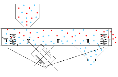 直線振動篩采用雙振動電機驅(qū)動,其兩電機軸相對篩面有一傾角,在激振力和物料自重力的合力作用下,物料在篩面上被拋起跳躍式向前作直線運動,從而達(dá)到對物料進(jìn)行篩選和分級的目的。