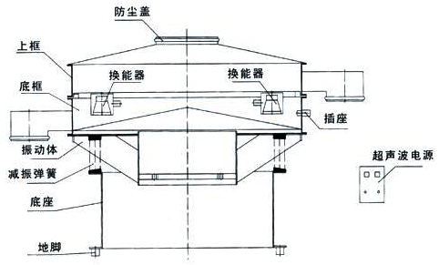 超聲波振動篩,由立式振動電機軸的上下兩端的偏心重錘產生振動源,使超聲波振動篩參振的上部在水平、垂直、傾斜方向做三次元運動,調節(jié)上、下部重錘的相位角,可改變物料在篩面上各種不同的運動軌跡,來滿足各種不同比重物料的良好篩分或過濾,增減上、下部重錘附加重塊的數量,會產生不同的振動力,可以達到不同比重、不同目數(或孔徑)物料的良好篩分、過濾效果。