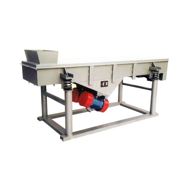 當(dāng)縱向安裝在篩體上的兩臺振動電機(jī)兩端的偏心塊便產(chǎn)生額定激振力,其產(chǎn)生在橫向的激振力相互抵銷,其縱向的激振力通過傳振體傳遞到整個(gè)篩面上,從而使篩面上的物料受其激振力而在篩網(wǎng)面上向出料口方向跳躍運(yùn)動。小于篩孔的物料通過篩孔落到下層,大于篩孔的物料經(jīng)連續(xù)跳躍后,經(jīng)出料口流出,由于篩分過程合理,可將物料經(jīng)振動篩分級后,取得幾種不同顆粒的物料,完成物料的分級。